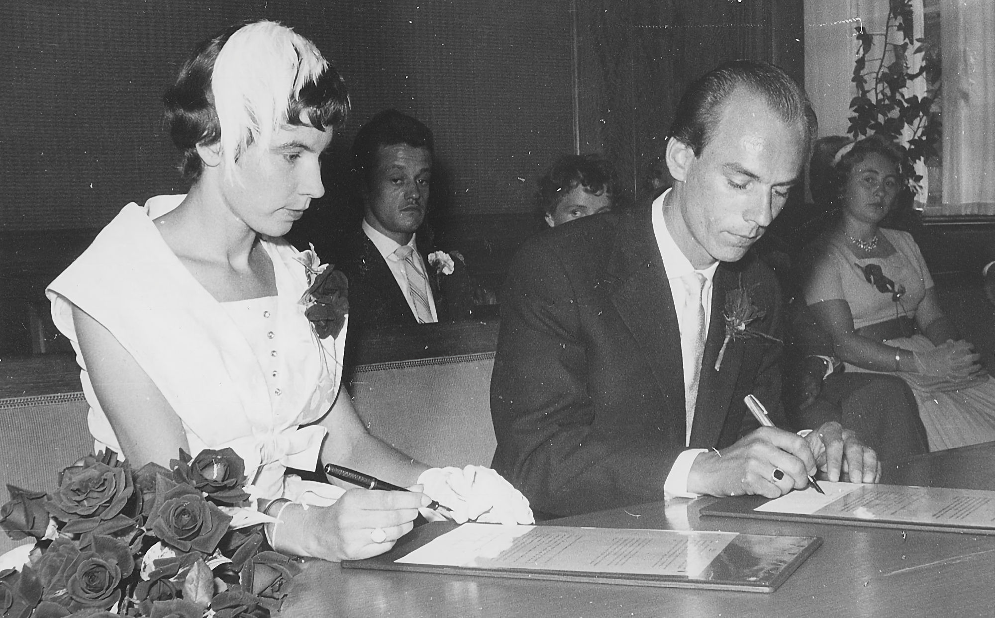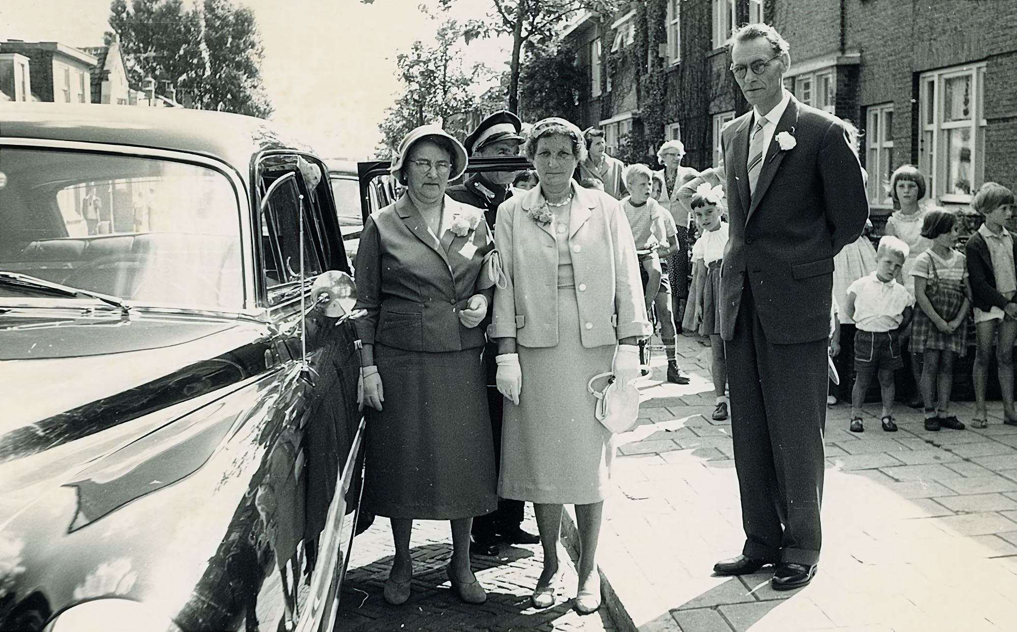 My mother's childhood in Leiden My father rings the bell at Leliestraat 5 in Leiden for the big moment Both grandmothers plus a grandfather ready to leave for the wedding ceremony Wedding picture of my parents My parents showing off presents from Russia Oma and opa like we want to remember them Forever lying together under a tree near a windmill in Soest My parents' gravestone all of usrosalie