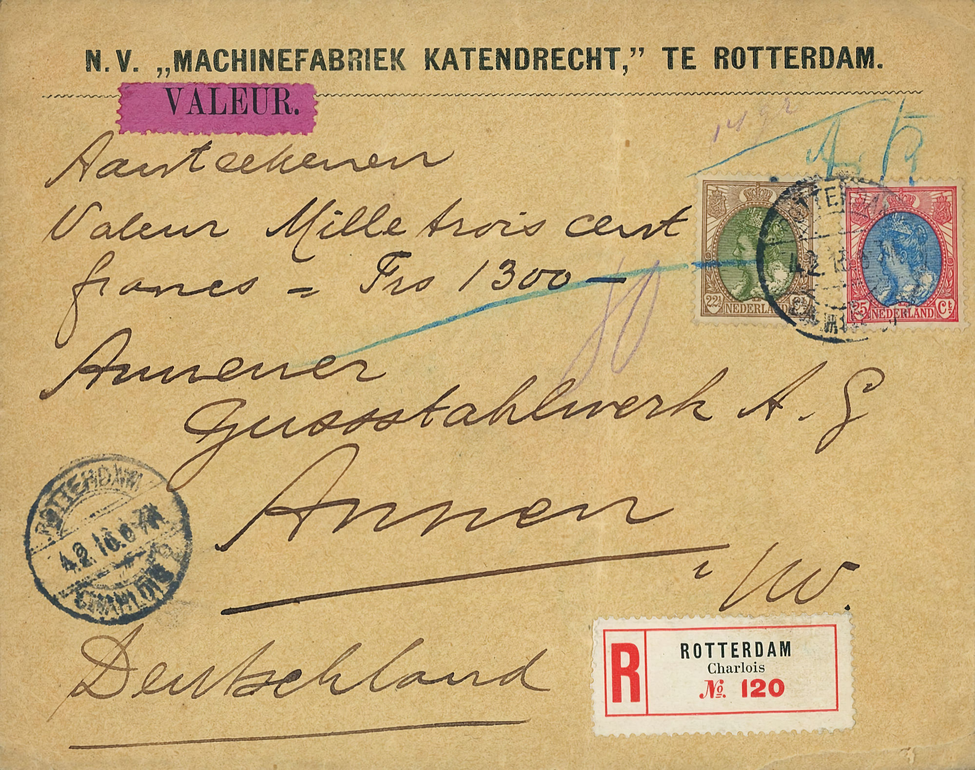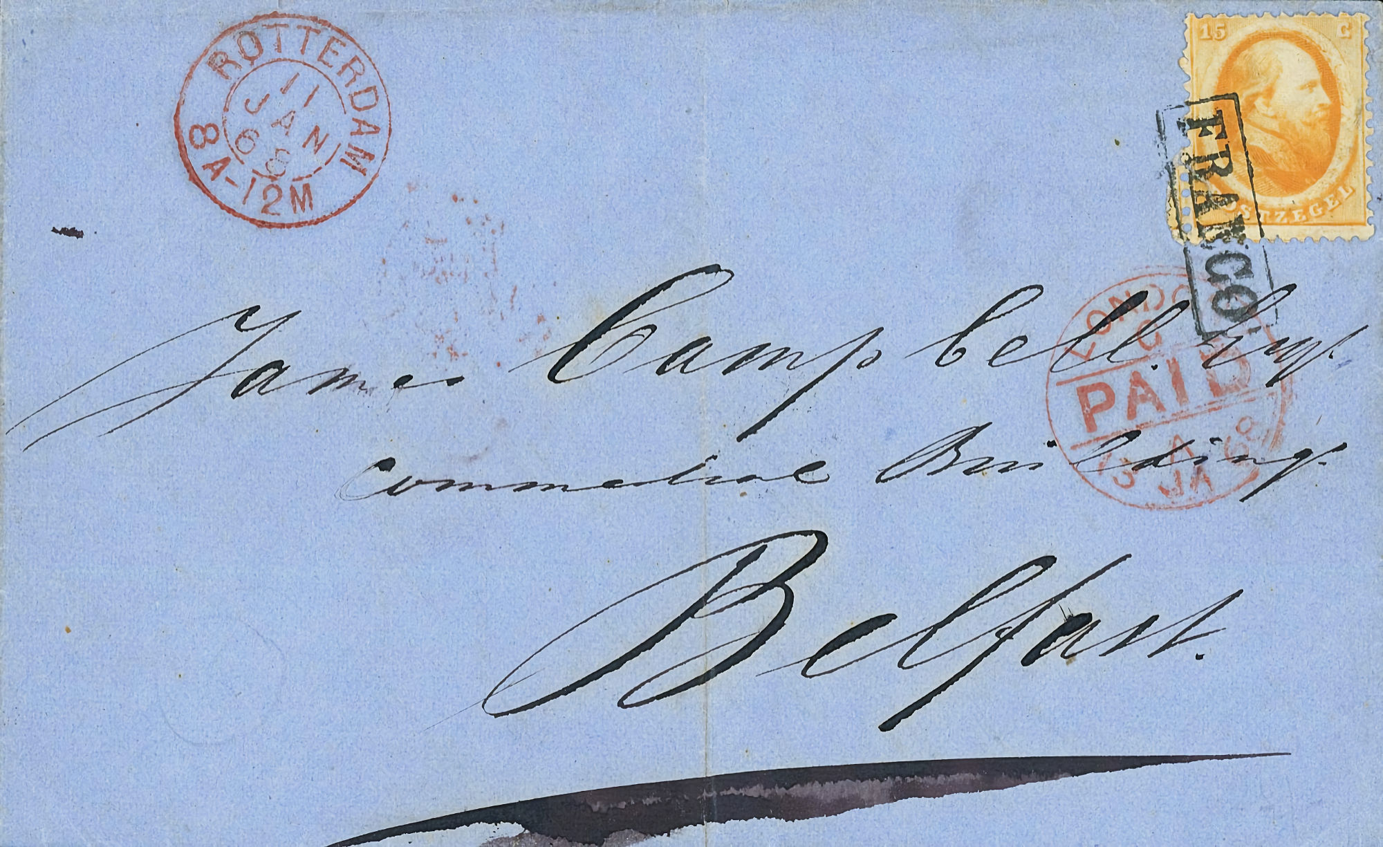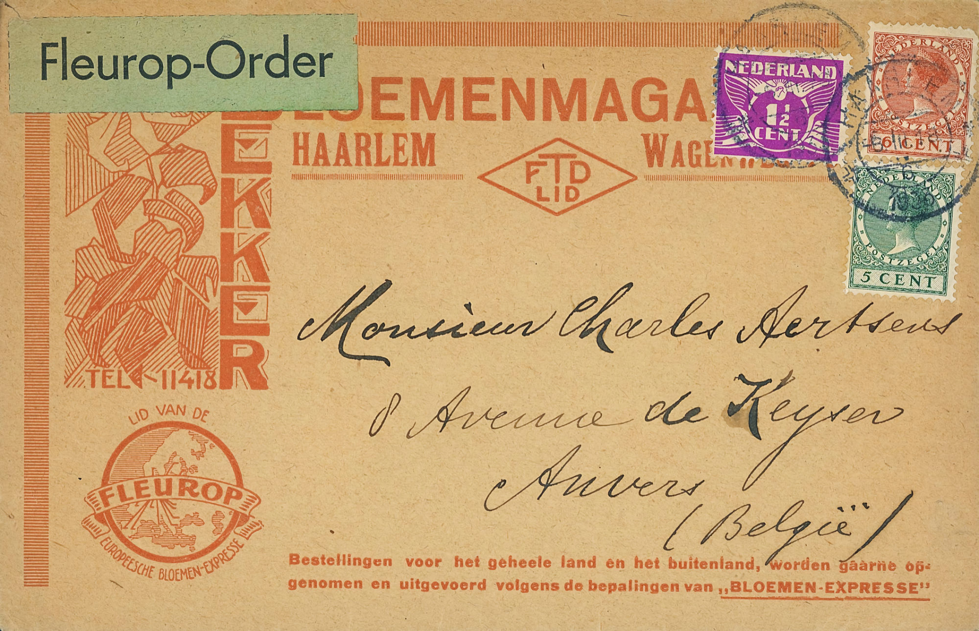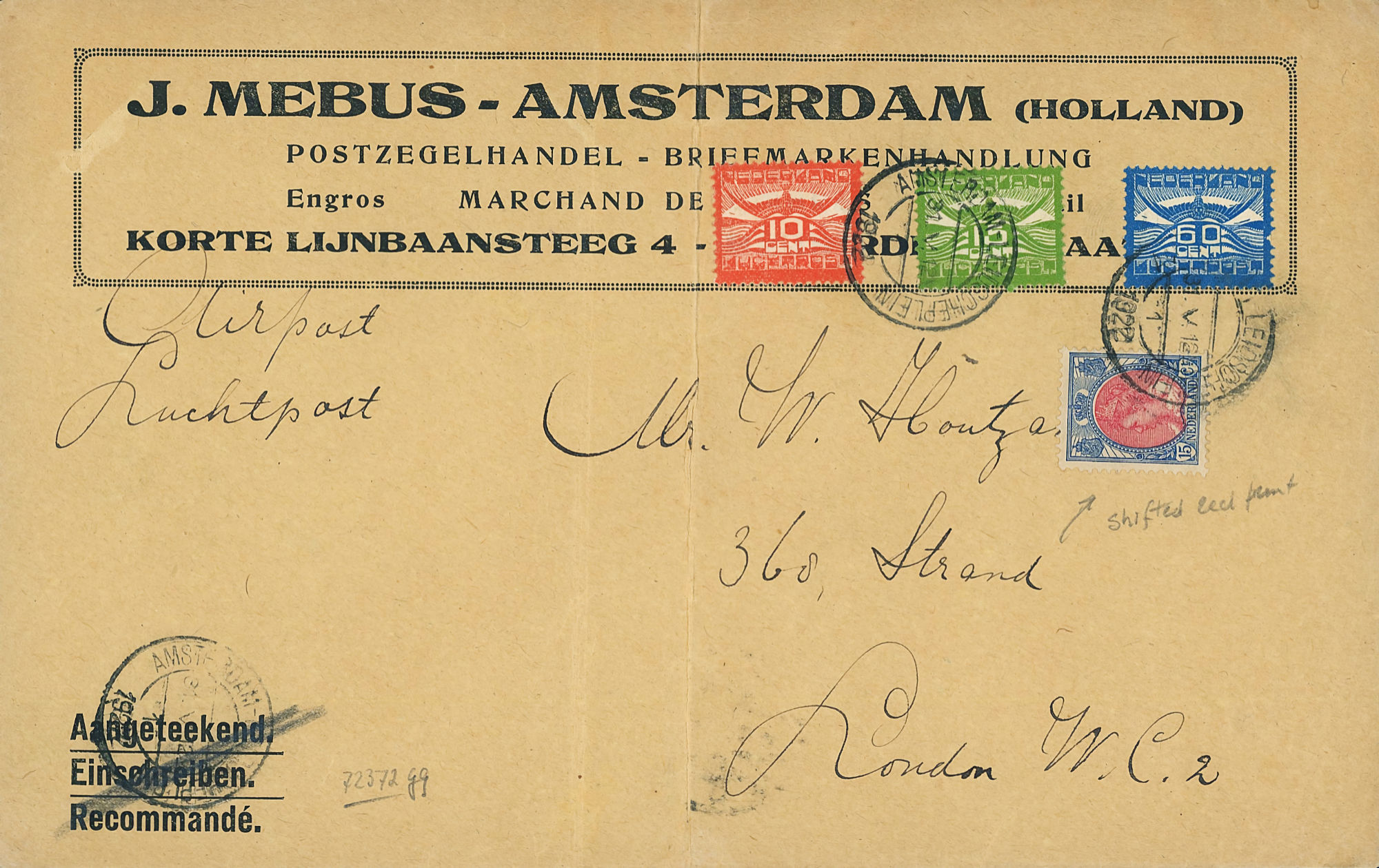 1864 NVPH 1 vertical pair on letter Haarlem - Groningen 1868 NVPH 6 (15 cents) on folded letter Rotterdam - London - Belfast 1870, cover to Bingen (Germany), Haarlem cancel 1874 letter 's Gravesande - St Geertruid 1876 Aangetekend Utrecht - Herwijnen 1892 Puntstempel 16 Breda mengfrankering naar Parijs 1894 Zaandam upr. Stationery Cover to Denmark 1904 Cover with large round stamp Rotterdam - England 1916 Insured cover to Germany, censored, arr. canc. 1922 Large cover to Germany nice franking 1922 Airmail to London + stamp shifted print + cert. 1923 express letter Utrecht with LP 1-3 1924 Letter to England with many Wilhelmina stamps 1924 New Year's Envelope with stamp Hengelo(ov) to Zeist 1928 Olympics complete set cover with stadium cancel 1928 R lp letter Haarlem - Poerwoasri, Dut. Indies 1928 Reg cover to Sweden f/vf 1929 Airmail to Switzerland with 1½ and 4½ gulden 1932 Cover with short bar stamp Zaltbommel - Soerabaja A.N.V.V. and children's stamps 1933 Company cover with short bar stamp Haarlem - Belgium blockspostcards