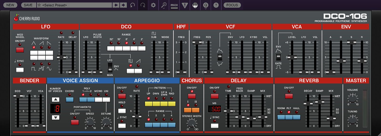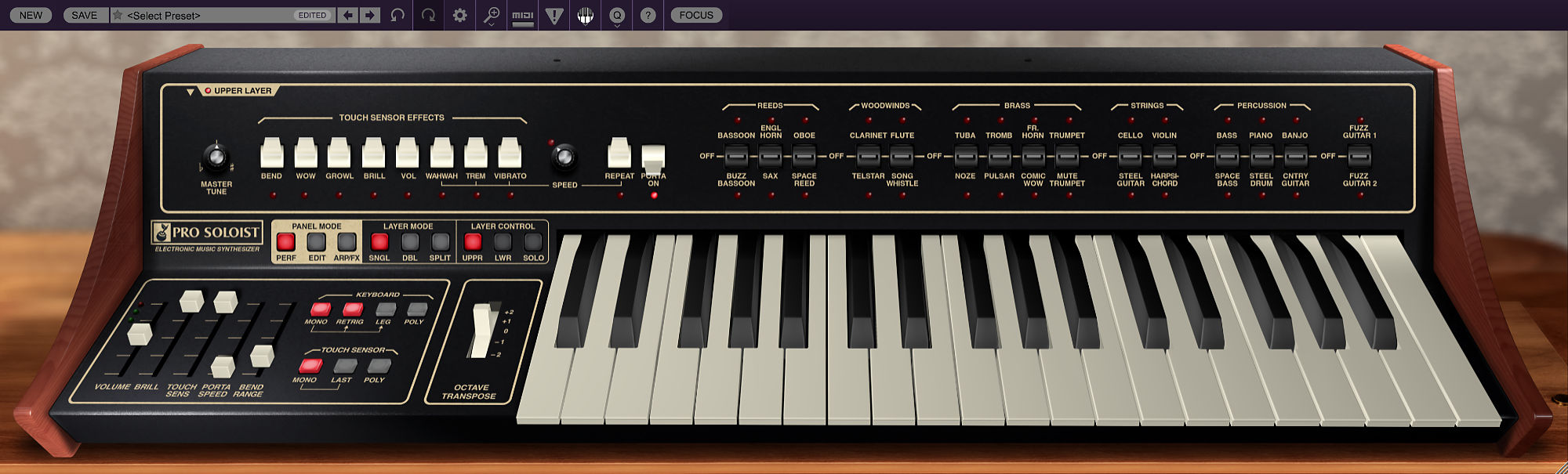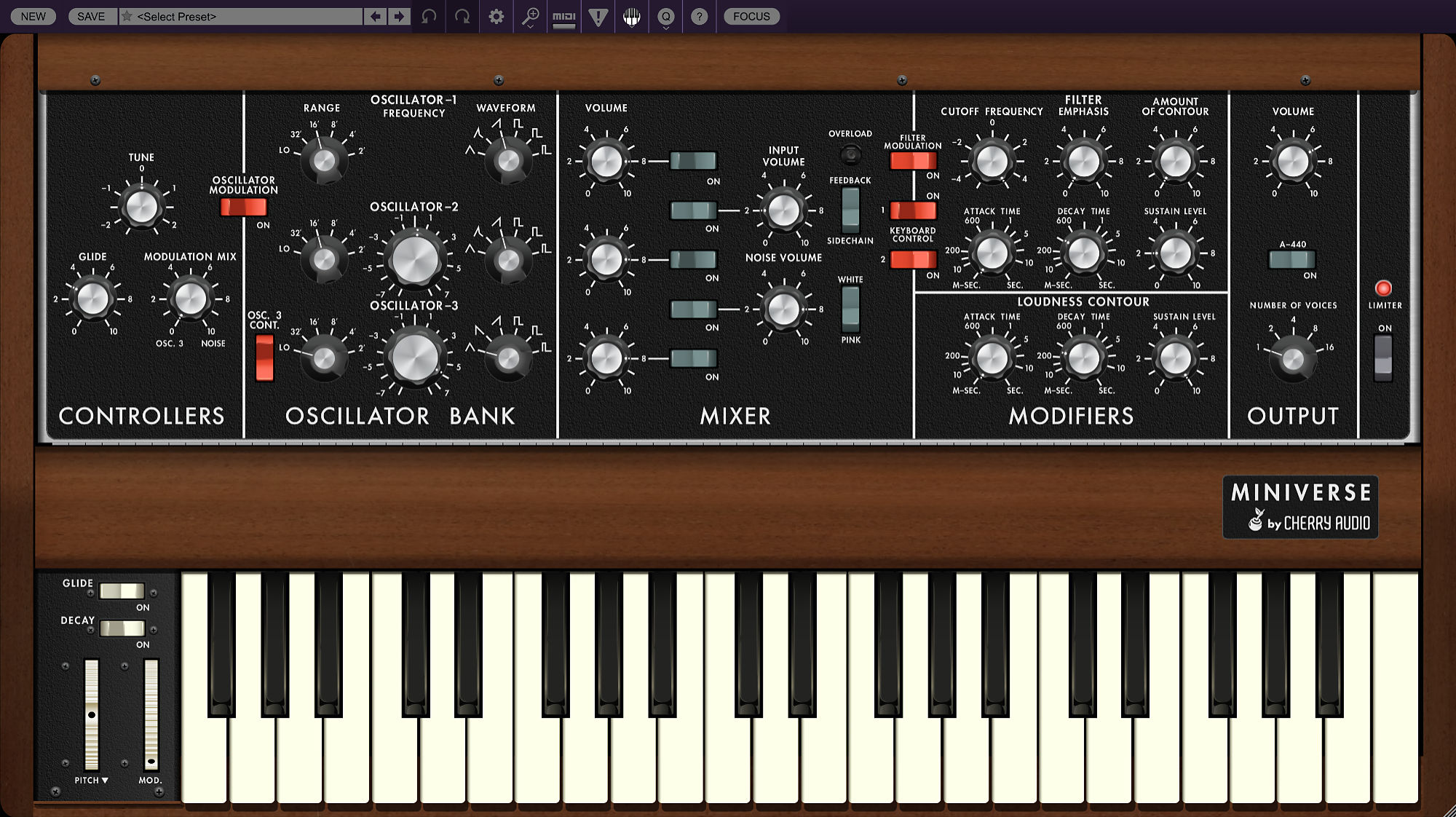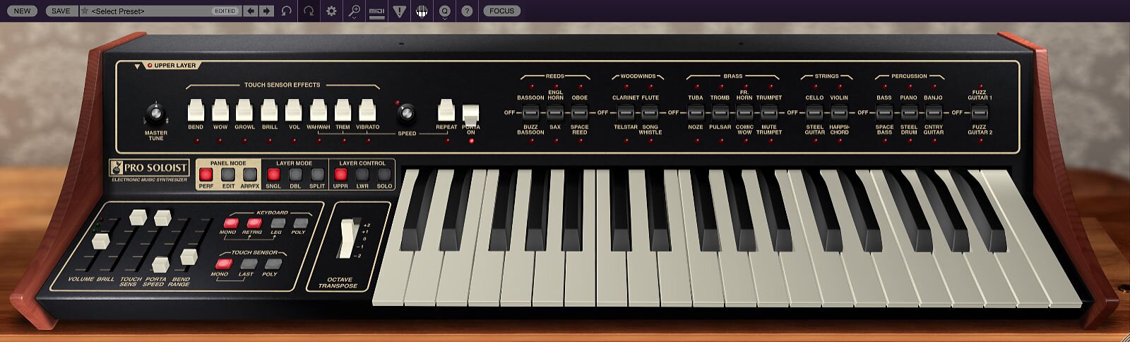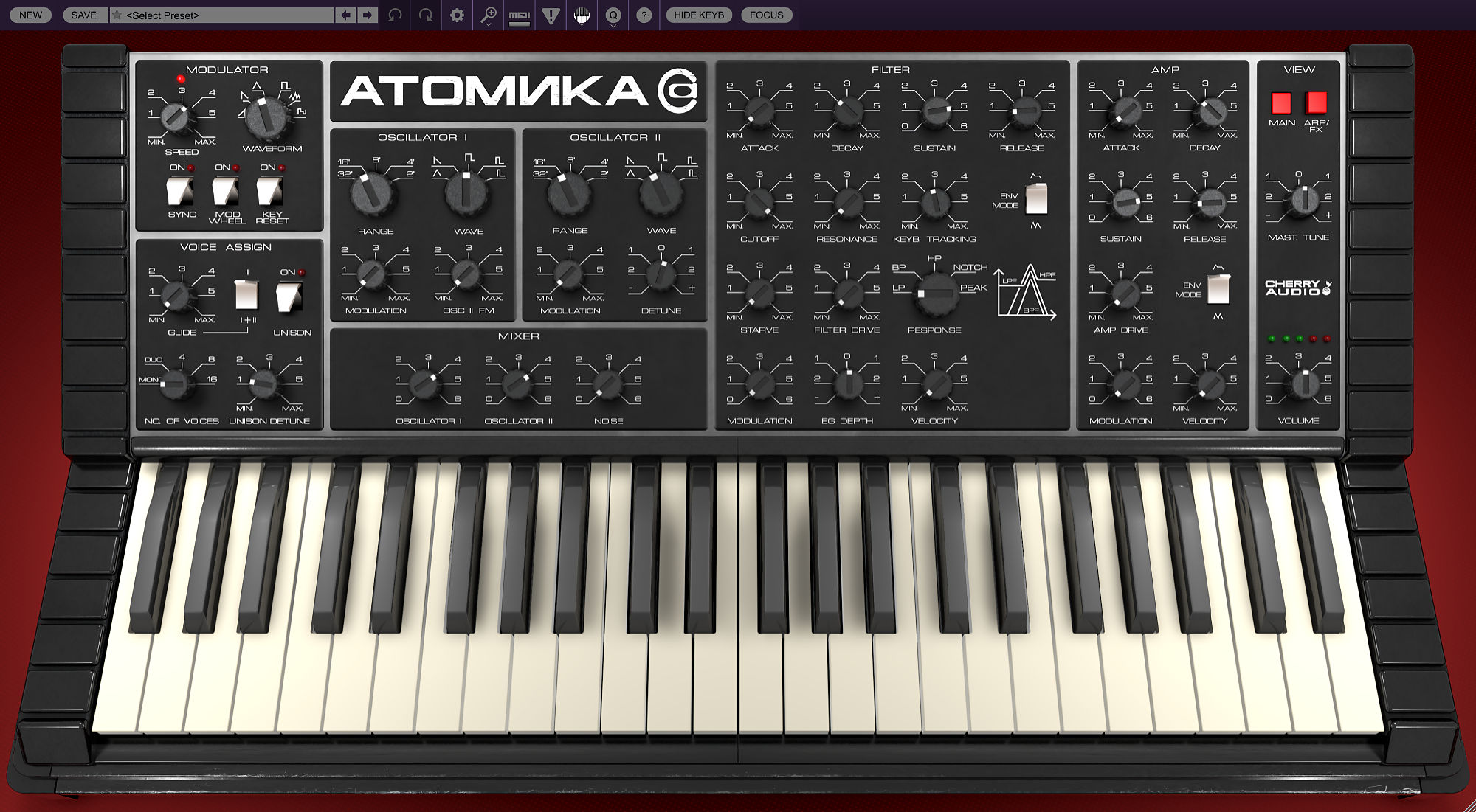 Atomika Blue3 CA2600 DCO-106 Dreamsynth Eight Voice Elka-X GX-80 Harmonia Lowdown Memorymode Mercury-4 Mercury-6 Surrealistic MG-1 Plus Miniverse Novachord Octave Cat P-10 Polymode Pro Soloist Arturiadaw's