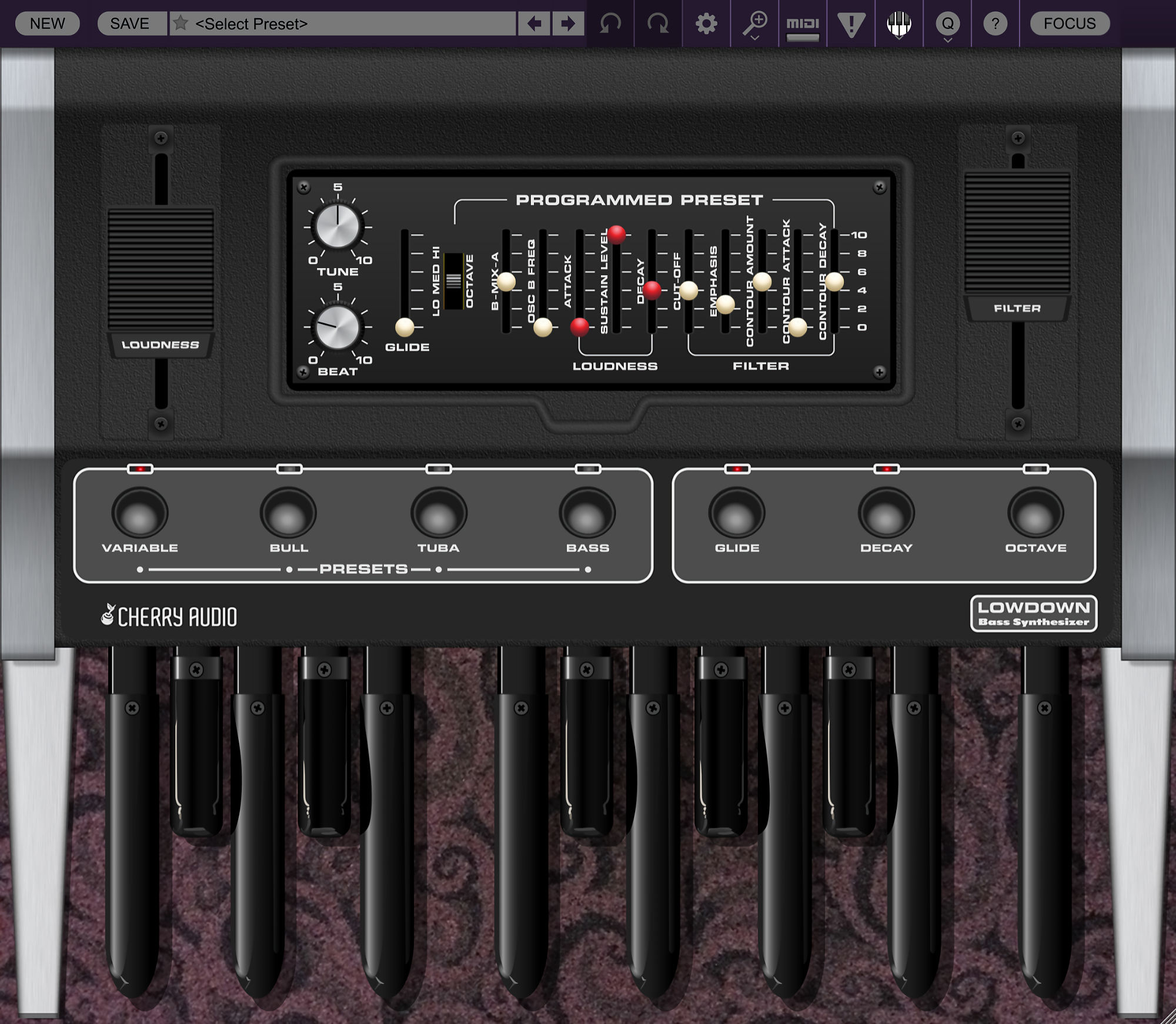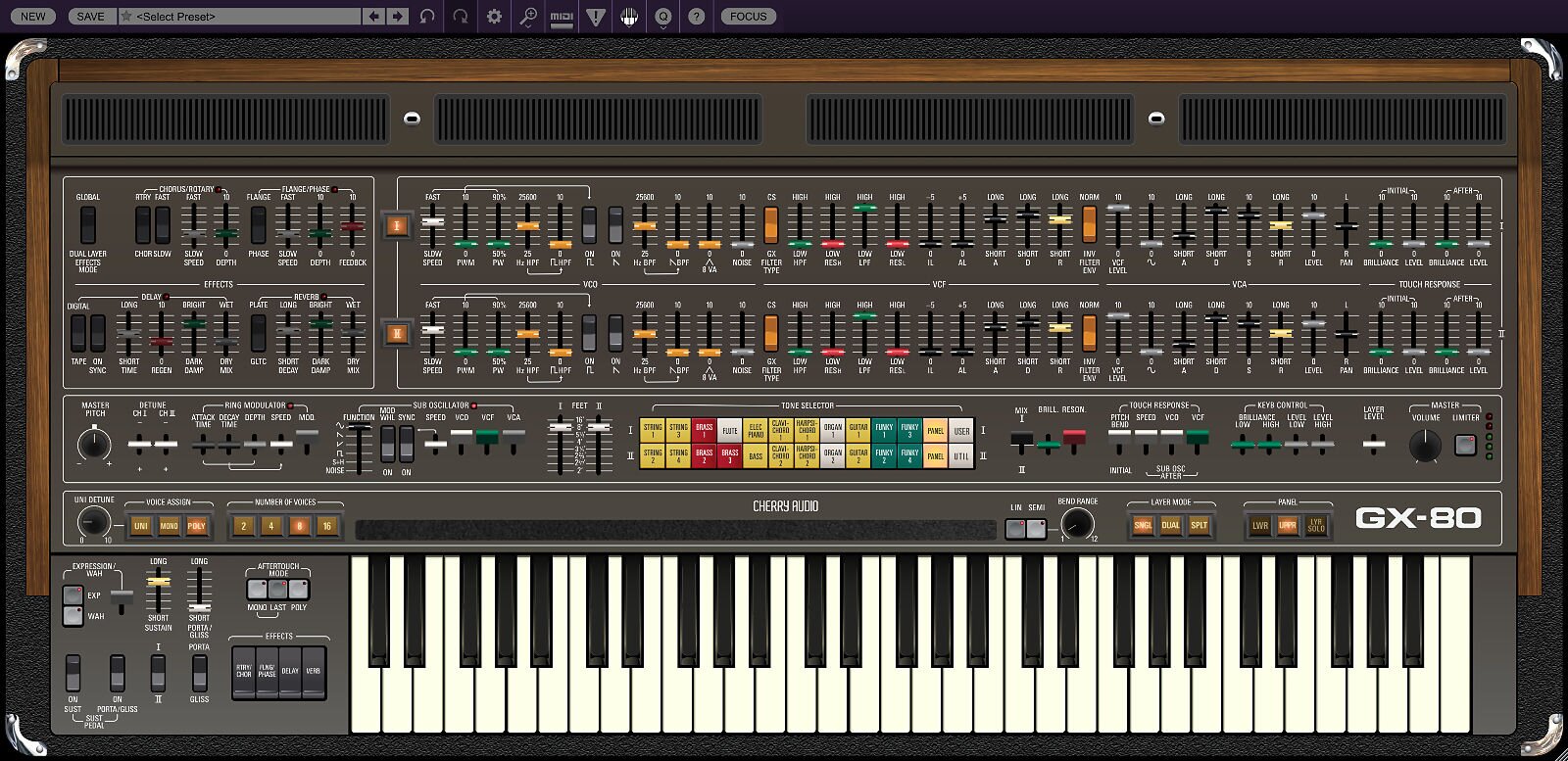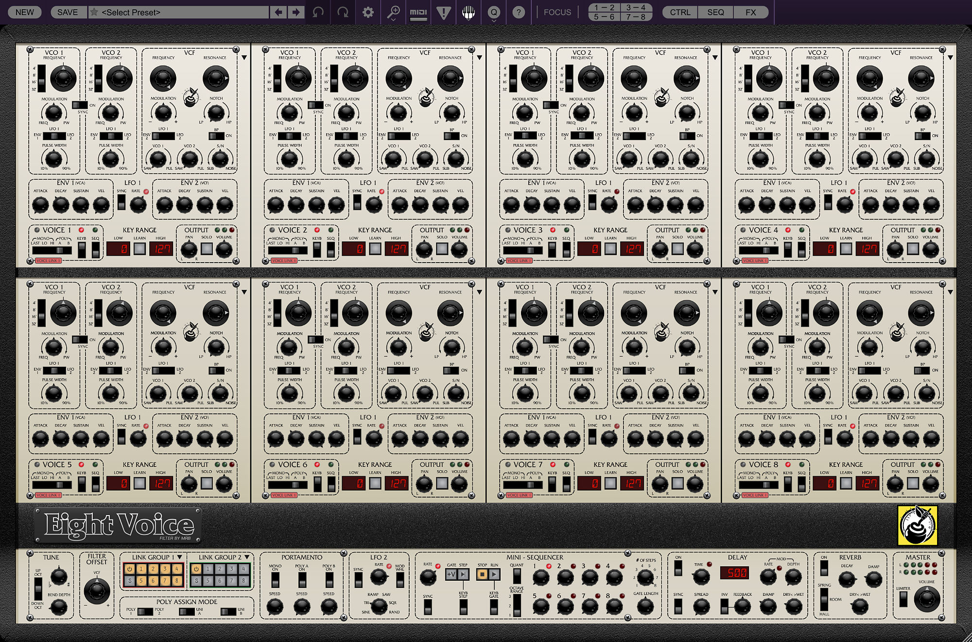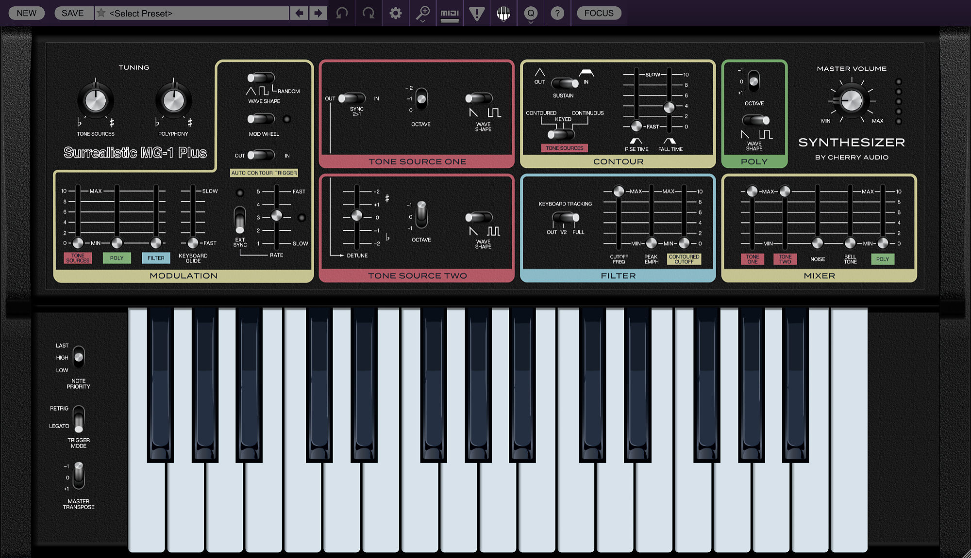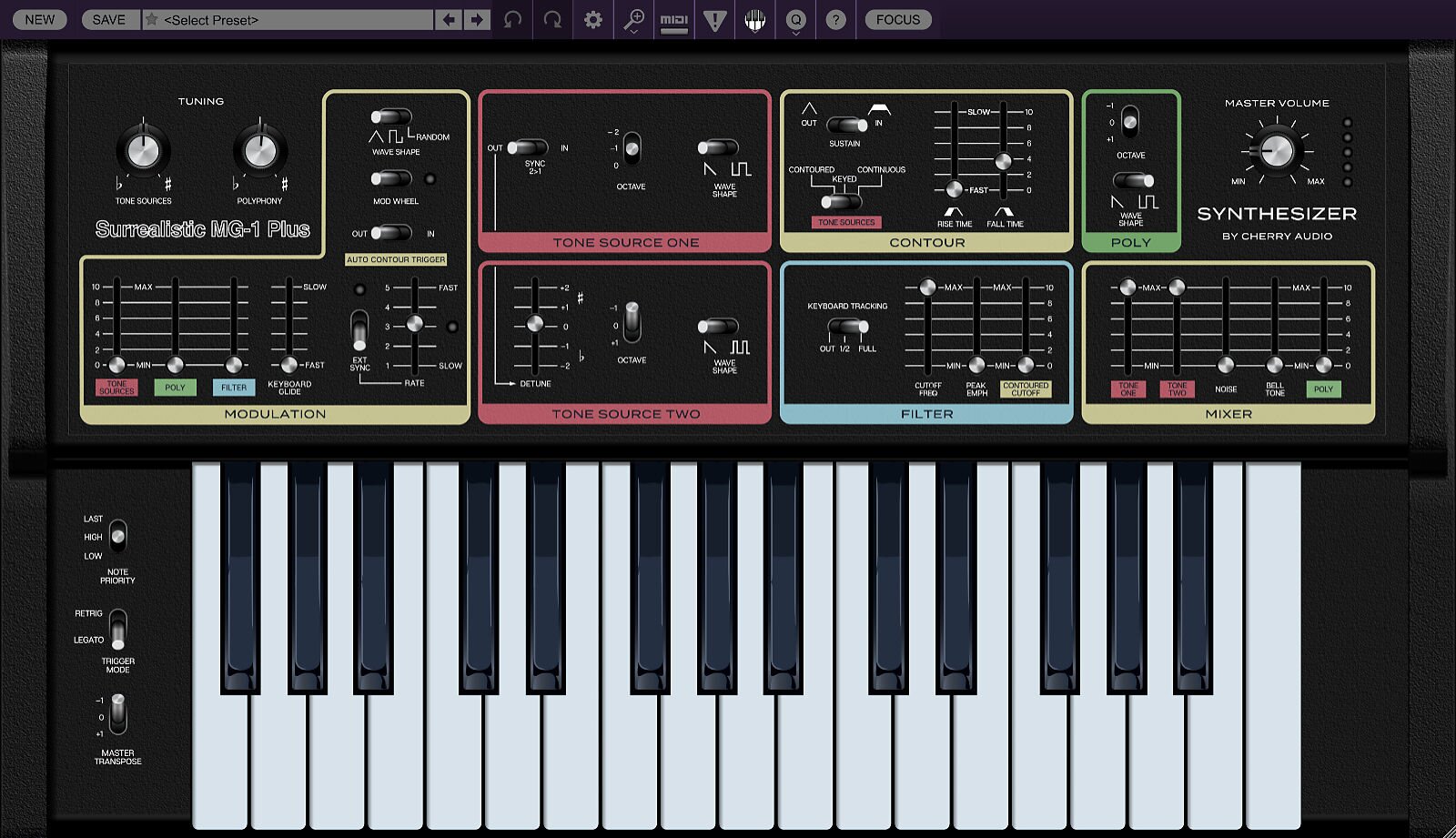 Atomika Blue3 CA2600 DCO-106 Dreamsynth Eight Voice Elka-X GX-80 Harmonia Lowdown Memorymode Mercury-4 Mercury-6 Surrealistic MG-1 Plus Miniverse Novachord Octave Cat P-10 Polymode Pro Soloist Arturiadaw's